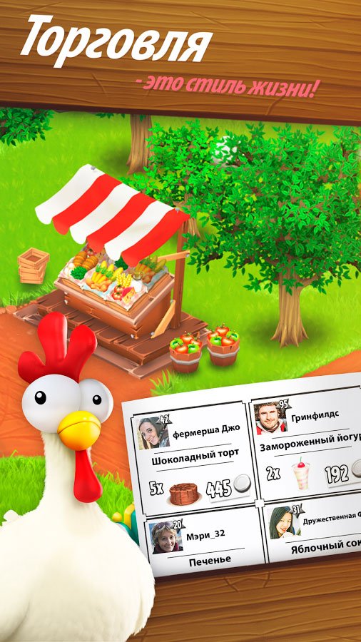 Hay Day – это новая уникальная игра про фермерские будни, в которой круглый год стоит хорошая погода и всегда солнечное настроение. Она высококлассно оптимизирована под различные современные гаджеты, так что никаких проблем с ней обычно не возникает. Здесь вы выступаете в роли веселого фермера, у которого на каждом шагу радостные домашние животные и богатый урожай. Следите за посевами, кормите скот, занимайтесь рыбной ловлей – делайте все, чтобы сельскохозяйственная жизнь была вам в радость.