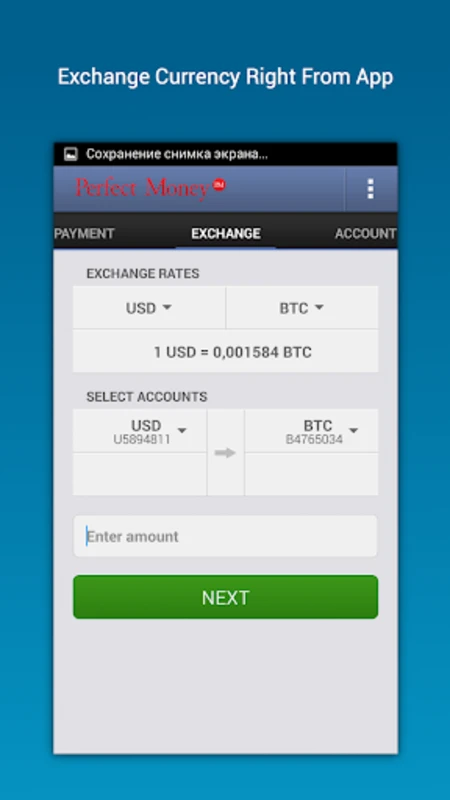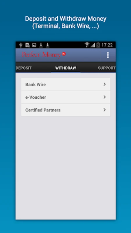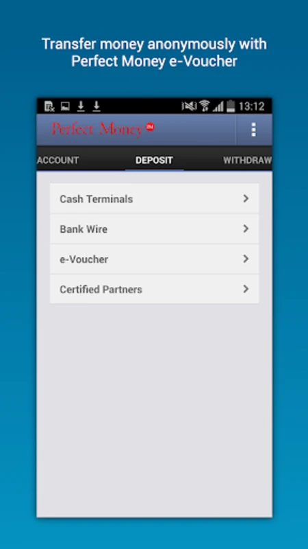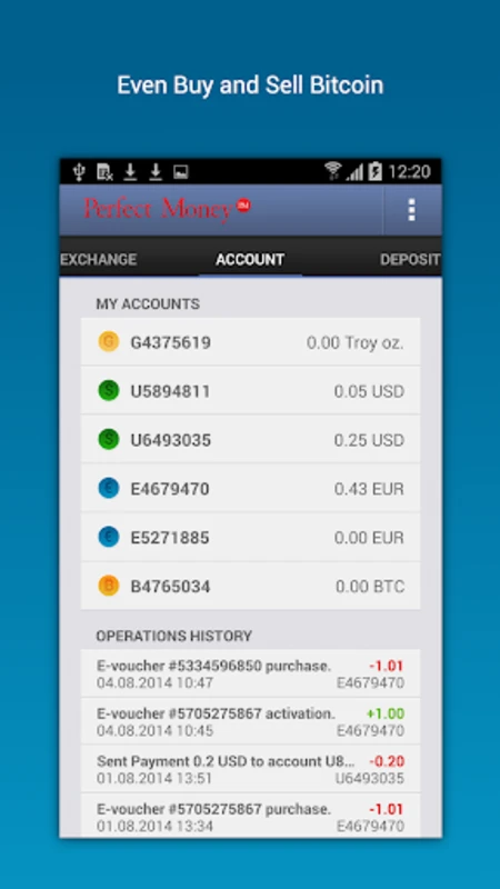 Эта мощная система онлайн-платежей предоставляет все свои возможности непосредственно на вашем Android-устройстве, позволяя вам управлять финансовыми транзакциями в любое время и в любом месте. Perfect Money является универсальным инструментом для различных финансовых операций, включая простые переводы между пользователями (P2P) и обмен валюты. Легко зарегистрируйтесь или войдите в свой аккаунт, чтобы все финансовые операции были всегда под рукой.