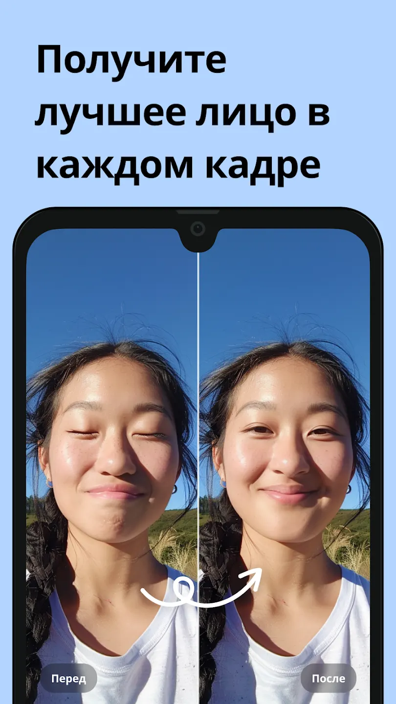- Повышать качество портретов, селфи и групповых фото