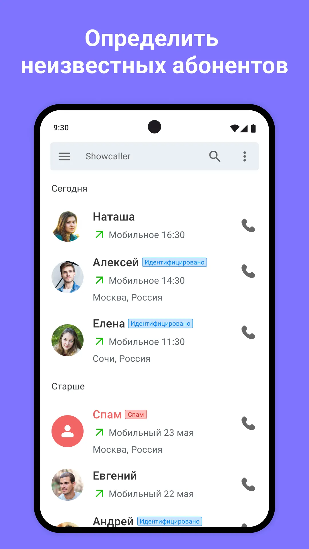 Функция определения вызывающего абонента позволяет в реальном времени распознавать номера, которых нет в вашей телефонной книге. ShowCaller отображает реальное имя звонящего, а после идентификации вы можете легко сохранить данные в контактах. Благодаря бесплатной системе определения вызовов вы узнаете, кто звонит, ещё до того, как поднимете трубку.