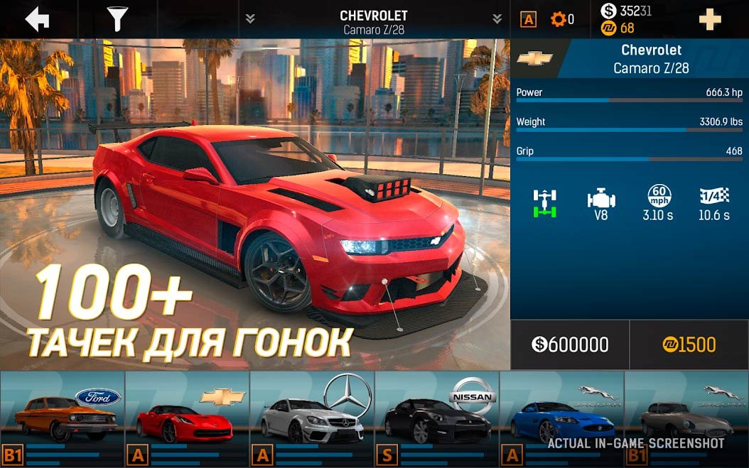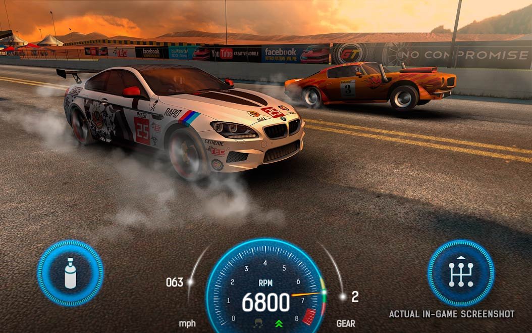 Покупайте свой первый автомобиль и займитесь его усовершенствованием внутренних характеристик. После этого у вас получится выйти на одну из доступных трасс и там соревноваться на звание короля улиц. Участвуйте в глобальном рейтинге среди друзей и постарайтесь заполучить место лидера. Особенно порадуют игрока возможности для усовершенствования и изменения внешнего вида собственной тачки. Можно поменять бампера, спойлеры и использовать уникальный винил.