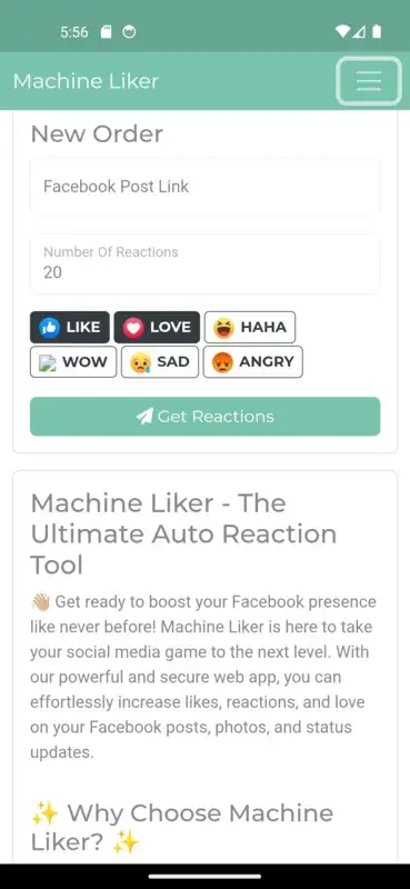 Machine Liker — это продвинутое Android-приложение, созданное для усиления вашего присутствия в Facebook. Устали ждать, пока ваши публикации наберут лайки и реакции? С этим приложением вы сможете увеличить вовлеченность легко и быстро!
