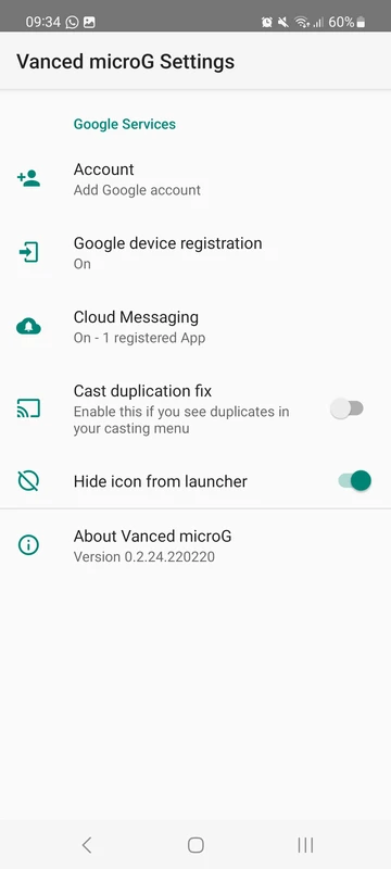 В настройках вы можете выбрать используемую учетную запись Google, активировать или отключить регистрацию устройства, а также убрать дублирующий значок Cast, который иногда появляется по ошибке.