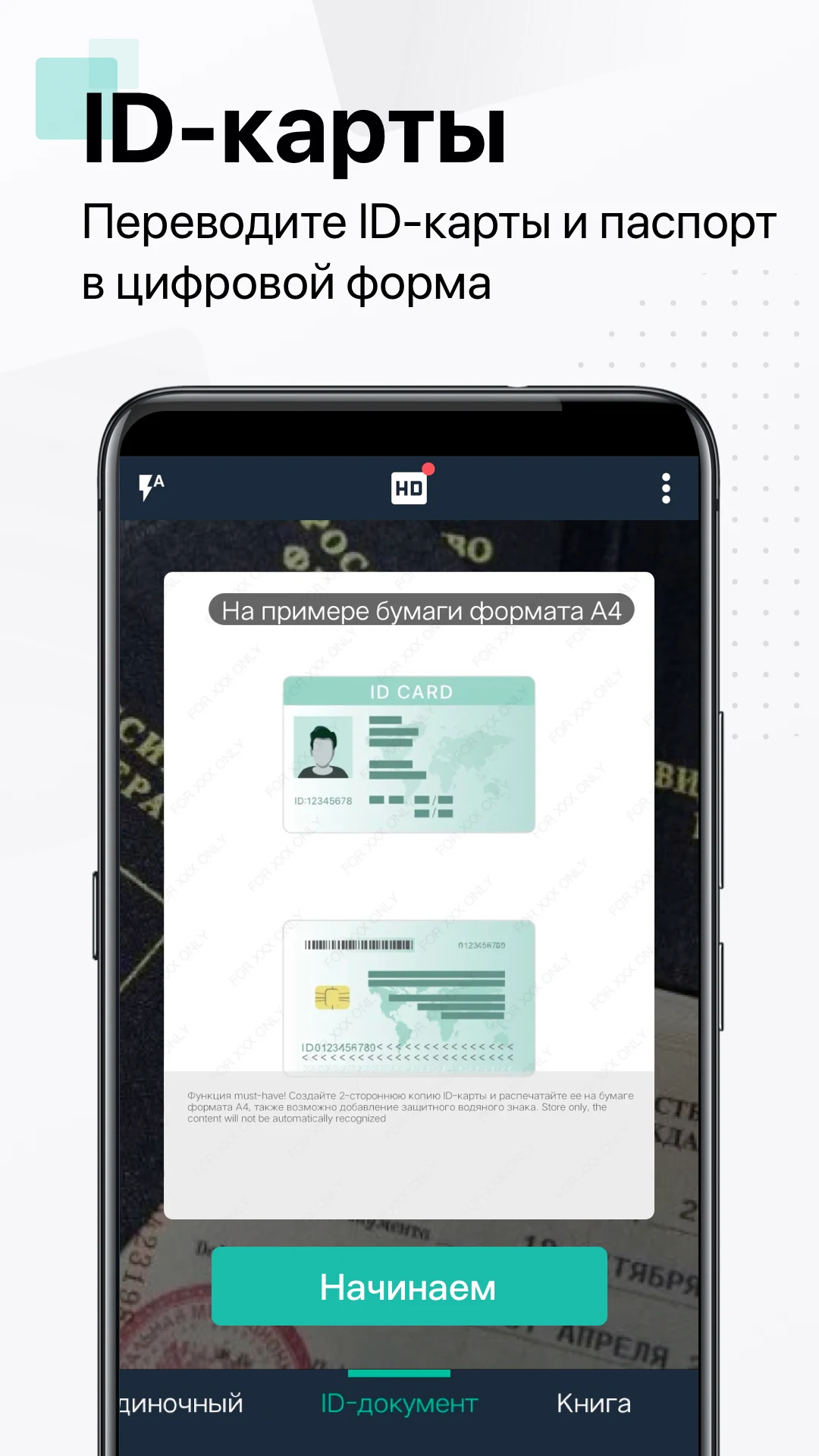 - ID DOCUMENT & PASSPORT — специальный режим для быстрого сканирования удостоверений личности и паспортов.