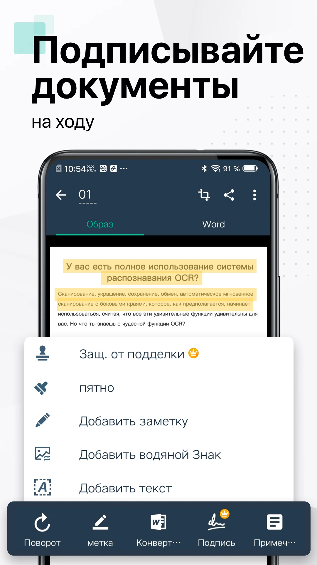 CamScanner — это высокоэффективное приложение, которое превращает ваше устройство в полноценный сканер с возможностью автоматического распознавания текста (OCR). Оно помогает быстро и удобно сканировать такие документы, как квитанции, паспорта, книги и сохранять их в форматах PDF, JPG, Word и TXT. Это приложение также позволяет легко делиться файлами с другими и защищать их с помощью PIN-кода для повышения уровня безопасности. Оно станет незаменимым помощником для студентов, сотрудников малого бизнеса, а также для профессионалов, таких как юристы и бухгалтеры. В CamScanner вы можете редактировать отсканированные файлы, улучшать их качество и подписывать документы с помощью цифровой подписи.