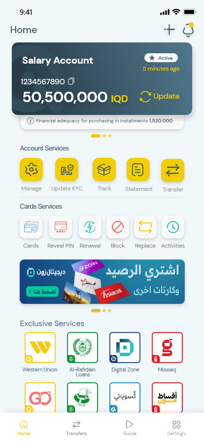 - Получать последние новости от Rafidan Bank и компании QiCard;