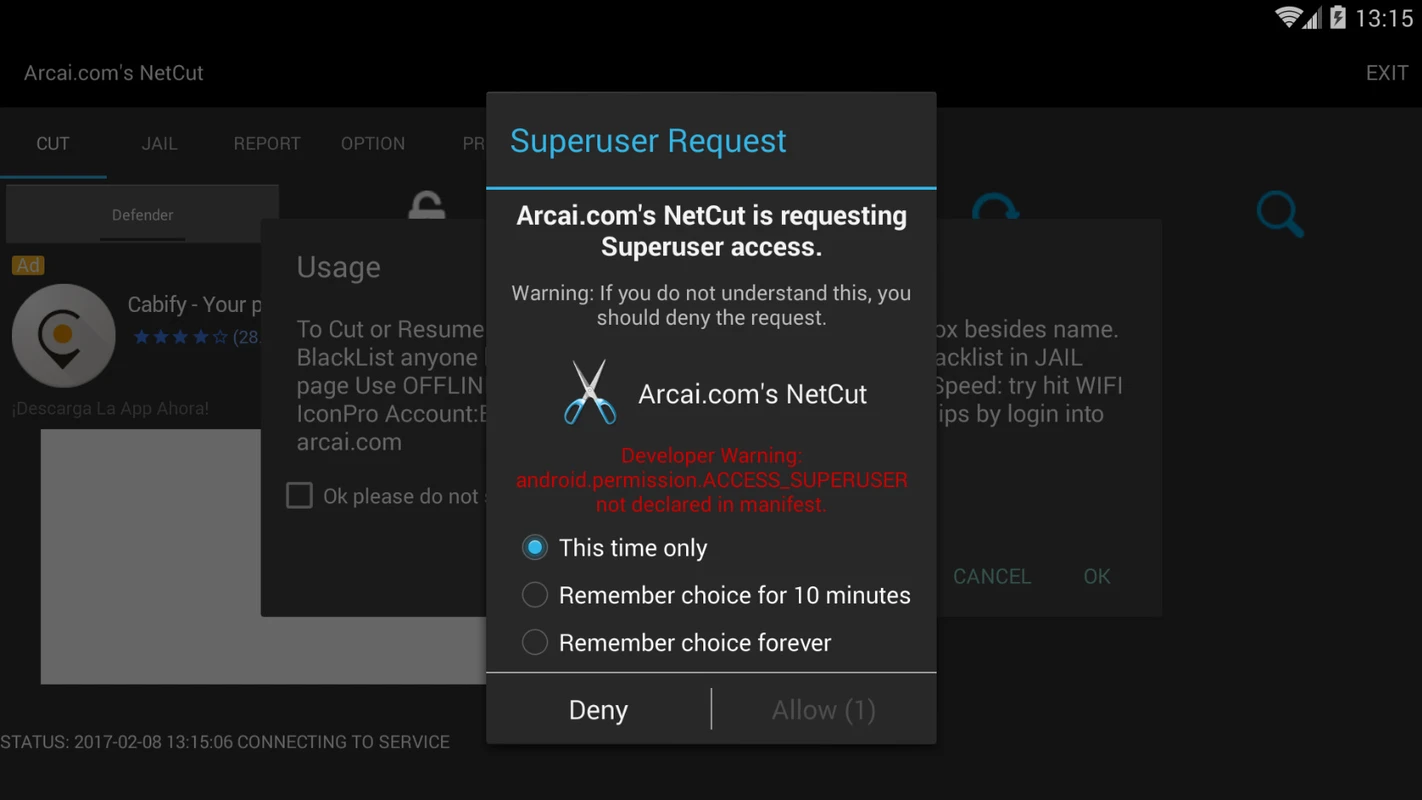 NetCut отображает список всех подключённых устройств. Достаточно выбрать устройство, чтобы заблокировать ему доступ к интернету. Для полной функциональности необходимо наличие root-доступа.