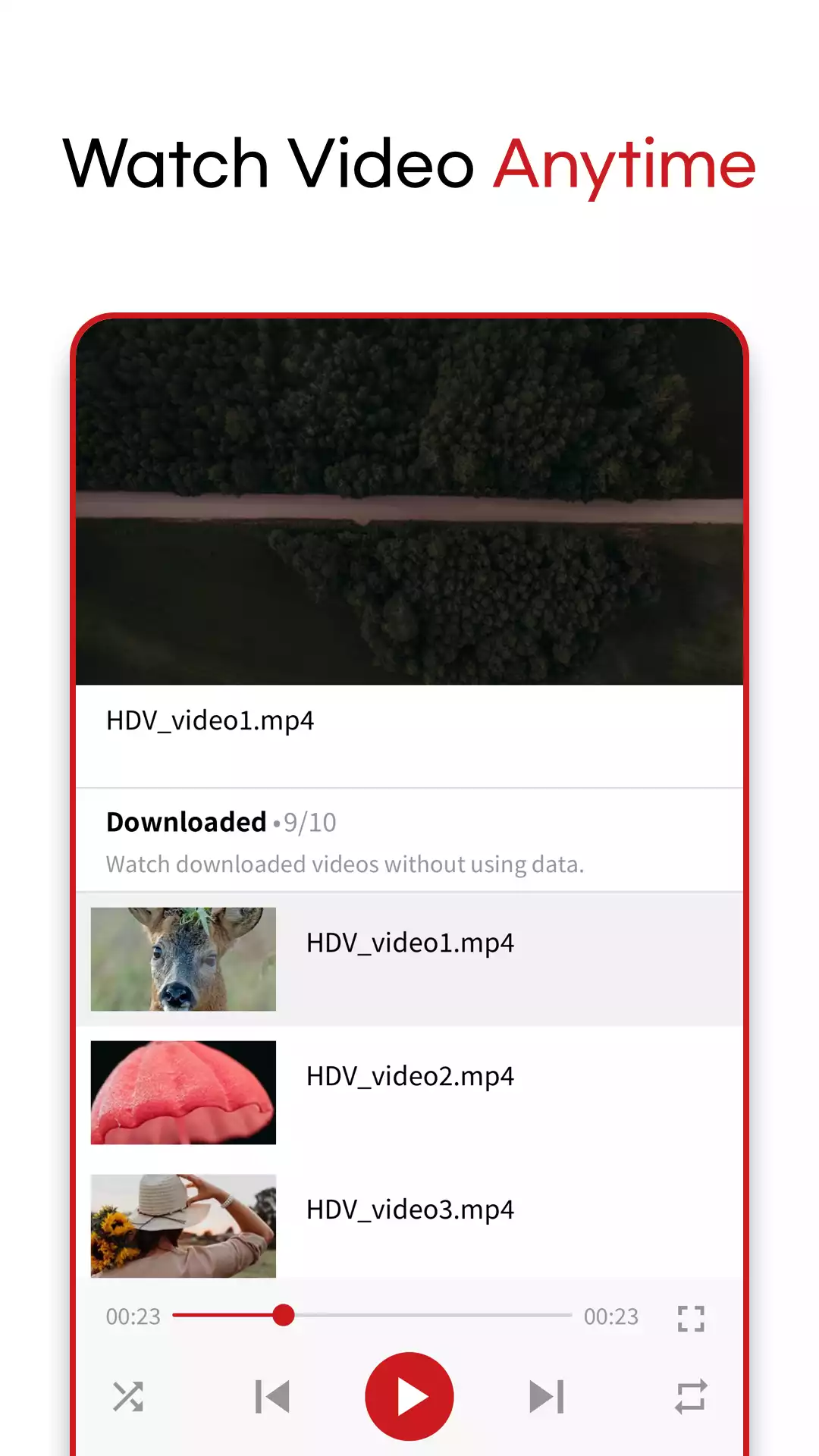 Все загруженные видео сохраняются в папке: sdcard/HDV Downloader. Интерфейс упрощает просмотр и обмен файлами.