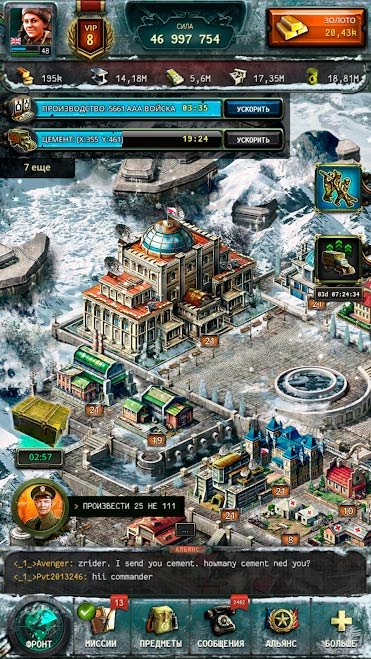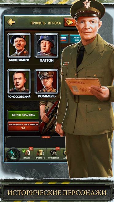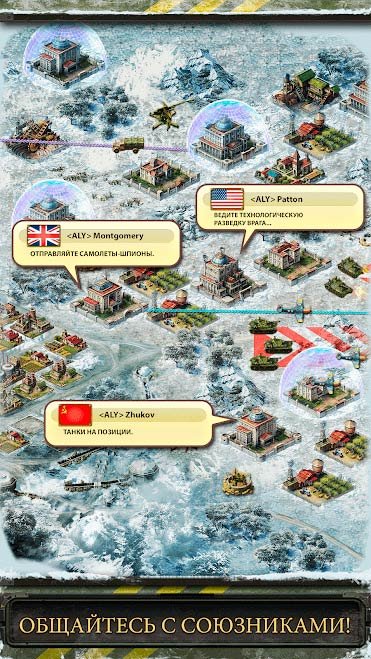 Начинайте сразу развивать свою собственную базу и изменять большое количество объектов. Займитесь созданием своей собственной мощной армии, среди которой будут танки, самолеты, корабли и естественно военные солдаты. Сформируйте из них эффективный отряд, чтобы сражаться с противниками через сюжетную историческую команду и узнайте много нового и интересного сюжетного сценария. Можете говорить с остальными своими друзьями и делиться тактическими установками и стратегией. Постарайтесь спасти свой огромный мир и взаимодействуйте с остальными генералами.