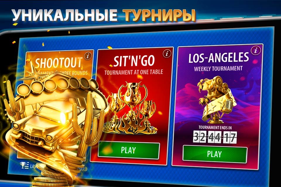 Благодаря детально проработанной бонусной системе, игроки тут могут получать фишки абсолютно бесплатно. Захватывающие онлайн турниры затягивают с первой раздачи, так что провести за такой игрой несколько увлекательных часов подряд очень просто. Знакомьтесь с игроками прямо за столом, обсуждайте партию или просто непринужденно общайтесь в спокойной приятной обстановке.