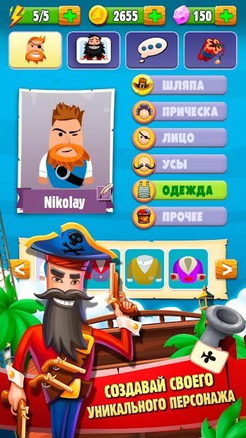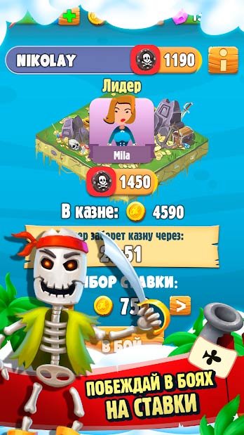 Итак, отправляйтесь на райский остров, где вас будут ждать жестокие и опасные столкновения с пиратами. Поборитесь за сокровища в этих огромных просторах и выигрывайте как можно больше золота. Сыграйте на многопользовательской арене и попробуйте одолеть своих друзей и остальных участников игрового процесса. Зарабатывайте как можно больше очков и выбирайтесь на позиции лидеров, среди игроков по всему миру. Веселитесь с игроками вселенной и обязательно попробуйте свои навыки в турнирных битвах. Вполне возможно, что у вас получится сорвать главный приз и стать самым богатым пиратом во всем мире.