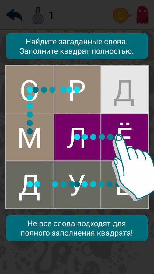 Занимательное приложение «Филворды: поиск слов» отлично подойдет для всех, кто любит провести время за разгадыванием хороших загадок. Сложность уровней постепенно повышается, так что со временем находить ответы станет не так-то просто. Открывайте квадратики со словами и следите, как сосуды наполняются волшебной жидкостью. Количество букв на игровом поле будет становиться все больше, что сделает игровой процесс еще более увлекательным. При возникновении сложностей вы можете воспользоваться подсказками, которые выдают веселые монстры.