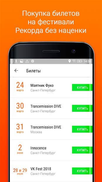 - Функции и режим для покупки билета на ближайший фестиваль музыки.