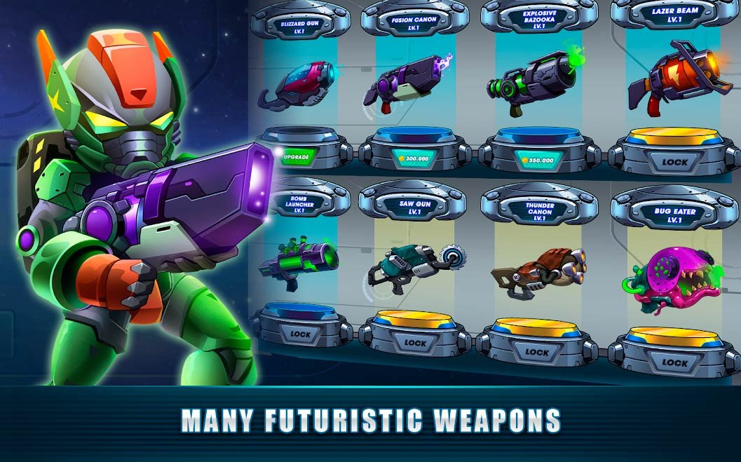 В этом фантастическом шутере у вас может получиться захватить огромное количество новых территорий. Бегайте через разнообразные препятствия, трудности и сражайтесь за звание лучших. Вам будет доверен огромный арсенал самого мощного и футуристического вооружения, с помощью которого можно пробиться к верхам. Собирайте самых легендарных и мощных героев, чтобы сражаться за галактику и сдерживать огромные волны от монстров. Вас ждут героические сражения между роботами и монстрами, от которых действительно захватывает дух. Исследуйте огромное количество новых планет и там завладейте ресурсами. Они помогут вам улучшить собственное вооружение и добиться серьезных продвижений.Информация об игре