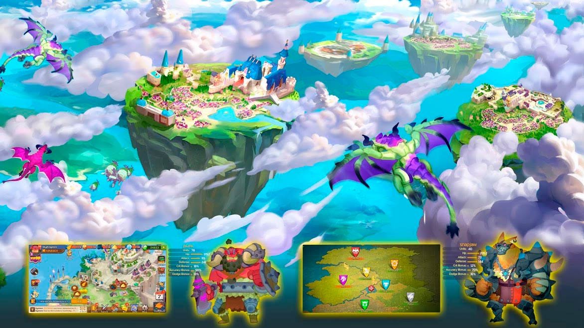 Постройте самый огромный и мощный замок на небесном острове и наслаждайтесь этой фантастической жизнью. Организуйте эффективную оборону королевства и защищайте свои земли от опасности. Вам предстоит сражаться с лордами и монстрами этого огромного фантазийного мира. Участвуйте в целом цикле сюжетных напряженных событий и попробуйте захватить главный трон королевства. Можете управлять своим собственным замком и наслаждаться красивой оригинальной атмосферой. Развивайте своего собственного уникального Дракона и улучшайте его способности. Вам предстоит добиться шикарных результатов и сделать из своего небесного замка целое королевство волшебства и магии.Информация об игре