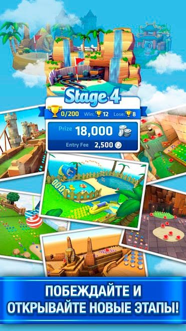 Если сможете скачать Mini Golf King - игра по сети на андроид получите такие особенности в свое пользование:- Многопользовательский режим игры вместе с друзьями и игроками по всему миру;