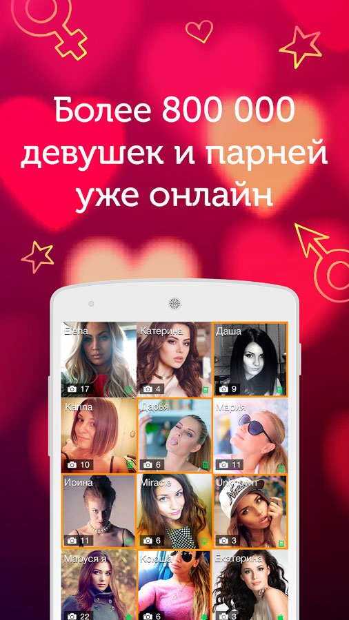 Листай огромное количество фотографий, которые принадлежат участникам приложения. Отмечайте те, что понравятся и если симпатия взаимна, то вам обязательно придет ответ. Главное не молчать, а проявить активность и вполне возможно, что вы познакомитесь и даже сможете встретиться. Если использовать возможности премиума можно будет попасть в топы, и тогда вы будете окружены вниманием полностью. В таком случае следует ожидать огромного количества комплиментов в свой адрес от онлайн участников.
