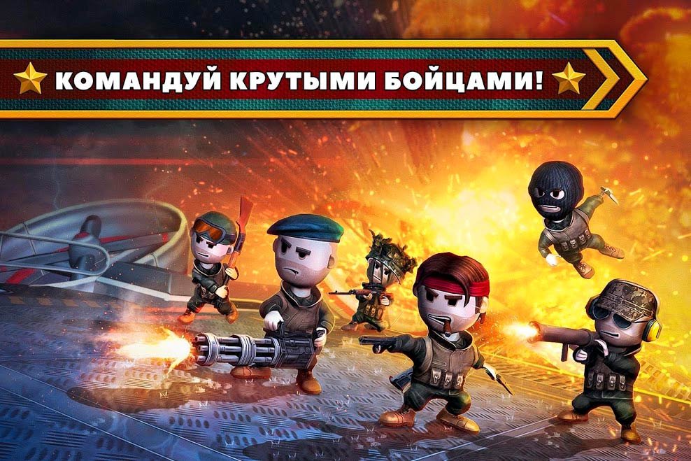Игрок должен сразу начать собирать свою собственную мощную команду из большого разнообразия солдат. Здесь есть штурмовики, опытные снайперы, скауты, командиры, диверсанты и еще много разных воинов, обладающих персональными особенностями. Соберите их всех в одну команду, чтобы продолжить участвовать в боях захватывающего режима. Подключайтесь к многопользовательской игре и сражайтесь с лучшими Боссами или играйте в затягивающую сюжетную компанию. Действительно от такой крутой трехмерной графики в стиле мультика будет очень трудно оторваться. Ежедневно вас ждут новые захватывающие моменты в оригинальной войнушке.Информация об игре
