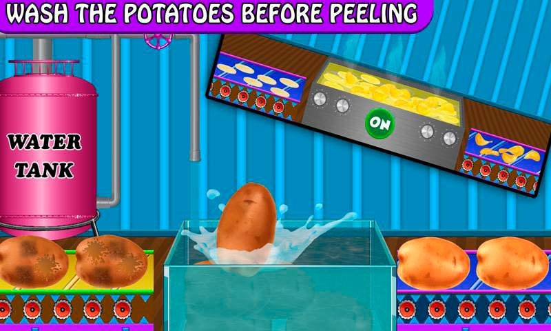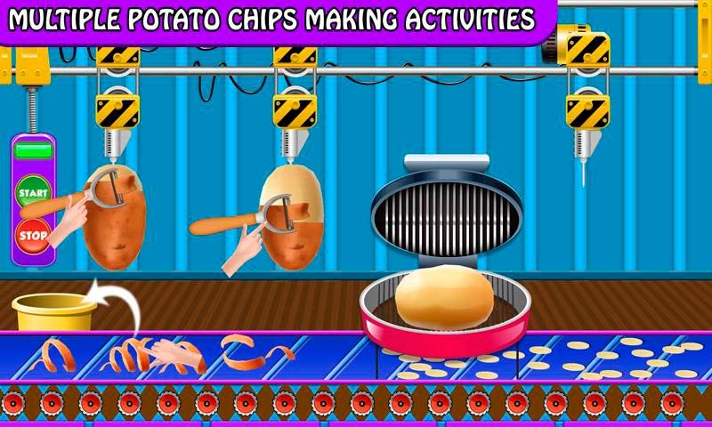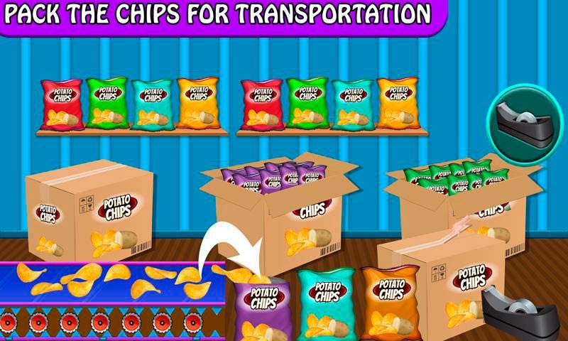 Вы будете каждый день делать настоящие картофельные чипсы в самой веселой и оригинальной игровой форме. Это будет очень просто, и вскоре вы начнете производить первые пачки вкуснейших хрустящих чипсов. Постарайтесь делать огромные объемы, чтобы добиться лучших результатов. Смешивайте вместе огромное количество ингредиентов и работайте с картофелем. Игрок должен будет его подготовить, собрать, помыть и наконец, отправить на плиту. После этого готовые чипсы нужно запаковать и отправить на склад. От такой интересной игры очень трудно оторваться и поэтому она нравится и детям и взрослым.Информация об игре