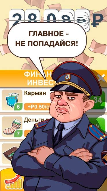 Впереди игрока ожидает очень интригующая и завораживающая игра в жанре кликера, где вы сможете пройти множество сюжетных сценариев и потратиться. Благодаря такой оригинальной и интересной игре можно будет убить огромное количество времени и отлично отдохнуть. Получайте ежедневно в автономном режиме огромную прибыль и потом тратьтесь на развлечения, но не забывайте и про нужные действия, например, такие как дать взятку или оплатить лечение. Вы сможете купить целый мир и стать самым успешным человеком во всем мире, но не позволяйте рэкетирам нагнуть вас.