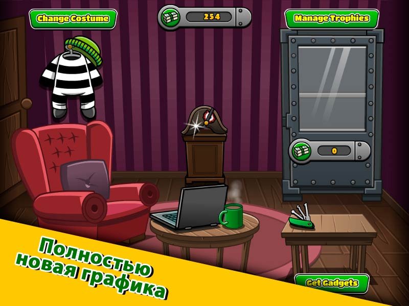 Погружайтесь в красивую французскую атмосферу, где вам будет предложено исследовать огромное количество удивительных мест и городских домиков. Игрокам понравится улучшенное качество графики, в которой воссоздана эта потрясающая оригинальная история. Занимайтесь ежедневно исследованием новых мест и локаций, где вам предстоит совершить ограбление или найти выход. Снова вас будут преследовать охранники и злые боссы, от которых нужно вовремя уносить ноги. Найдите на локации все сокровища, которые помогут разбогатеть Бобу, но потом действуйте еще внимательнее, чтобы покидая место, вас не поймал охранник. Так игрок сможет продемонстрировать все свои навыки и способности как одного из лучших воришек в мире, чтобы найти главное богатство и стать успешным вором.