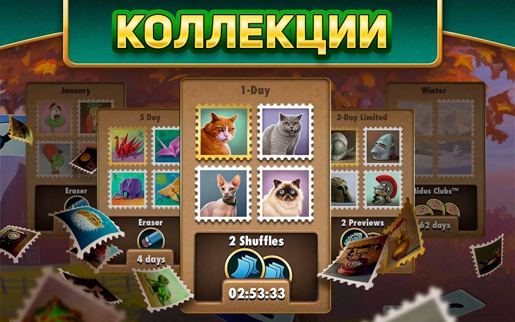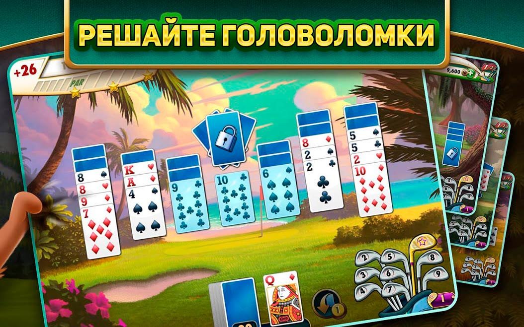 Вам не нужно знакомиться с правилами игры, потому что они не изменены и находятся в своем оригинальном виде. Просто занимайтесь раскладкой огромного количества комбинаций из разнообразных карт и наслаждайтесь такой потрясающей живой атмосферой. Вы сможете играть в гольф через составление простых пасьянсов. Таким образом, можно будет посетить больше тысячи оригинальных мест и добраться до легендарных наград и эксклюзивных достижений. Собирайте у себя целую коллекцию из предметов, которые помогут вам стать великим игроком и пробиться к верхам рейтинга. Поделитесь своими сюрпризами с друзьями и будете вознаграждены.