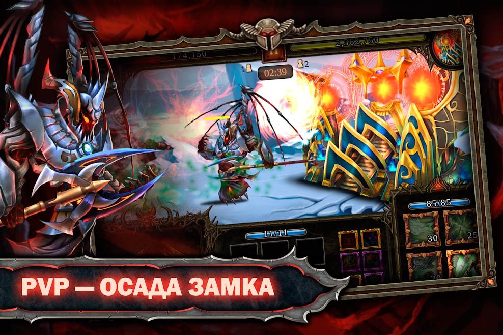 Это будет самая великолепная и интересная для вас игра в фантастической графике и атмосфере. Впереди ждут великие сражения за превосходство, как в адских землях, так и на небесном королевстве. Вступайте у битвы с большим разнообразием эпических боссов и займитесь созданием своей собственной армии, куда войдут только лучшие герои. Прокачивайте уровень их мастерства и постоянно улучшайте способности, чтобы приготовить воинов к новым глобальным войнам и захватам вражеских территорий. Вы должны стать легендой в этих мирах.