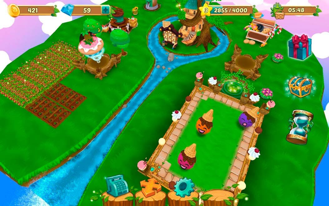 - Управление целой вселенной сладостей, где есть город, ферма и множество объектов производственного типа;