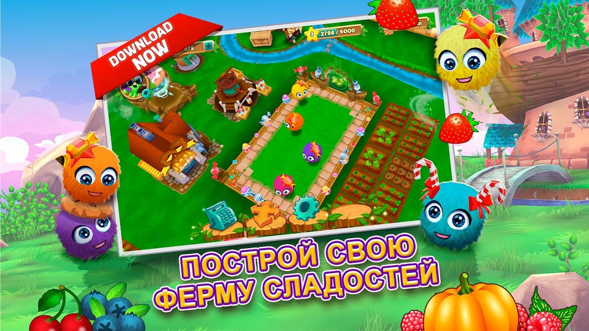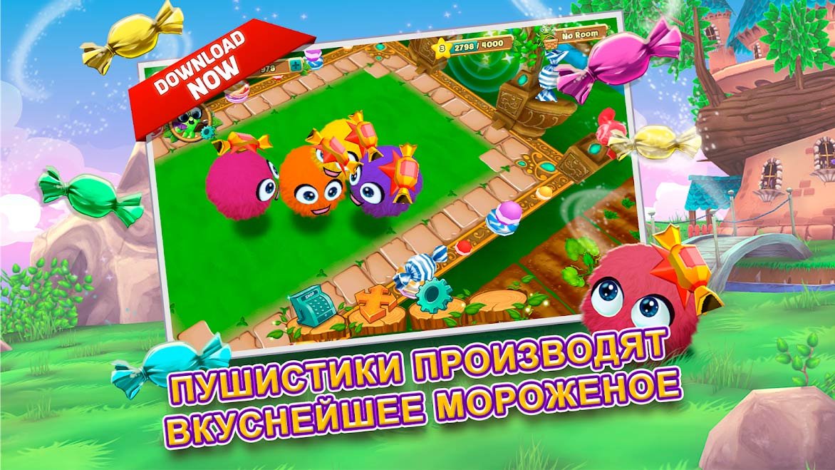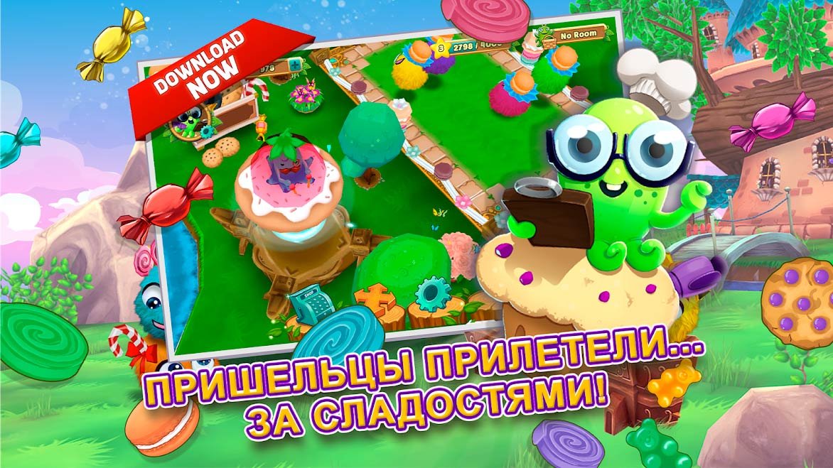 Начинайте свое знакомство с красивыми и оригинальными персонажами этой сладкой истории. Здесь вы встретитесь с милыми и забавными персонажами, которых называют флуффиками. Они будут постоянно рядом и объяснят, как поступать в трудных уровнях. Без таких хороших помощников ваша игра могла бы не сложиться. Начинайте собирать большую коллекцию из сладостей и отправляйте их в свою коллекцию. Игроку обязательно понравится эта очаровательная атмосфера и красивая графика в объемном стиле. Ежедневно игроки смогут производить огромное количество новых продуктов, а потом продавать их для инопланетян. Эти персонажи будут у вас гостей очень часто и им нужны ваши качественные вкусные продукты.Информация об игре