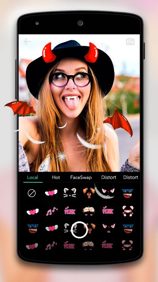 Face Camera – это уникальное приложение для мобильных устройств, с помощью которого вы сможете создавать из обычных фотографий настоящие шедевры. Здесь имеется множество разнообразных тем и наклеек, позволяющих преобразить любое фото в нечто неординарное, стильное и уникальное. Куча красочных образов для портретов так меняют облик человека, что иногда становится очень сложно его узнать. Кроме редактирования фото здесь также можно менять и видео, что открывает еще больше возможностей для развлечений. Выбирайте несколько оригинальных инструментов и начинайте творить чудеса.- множество разнообразных наклеек и тем;