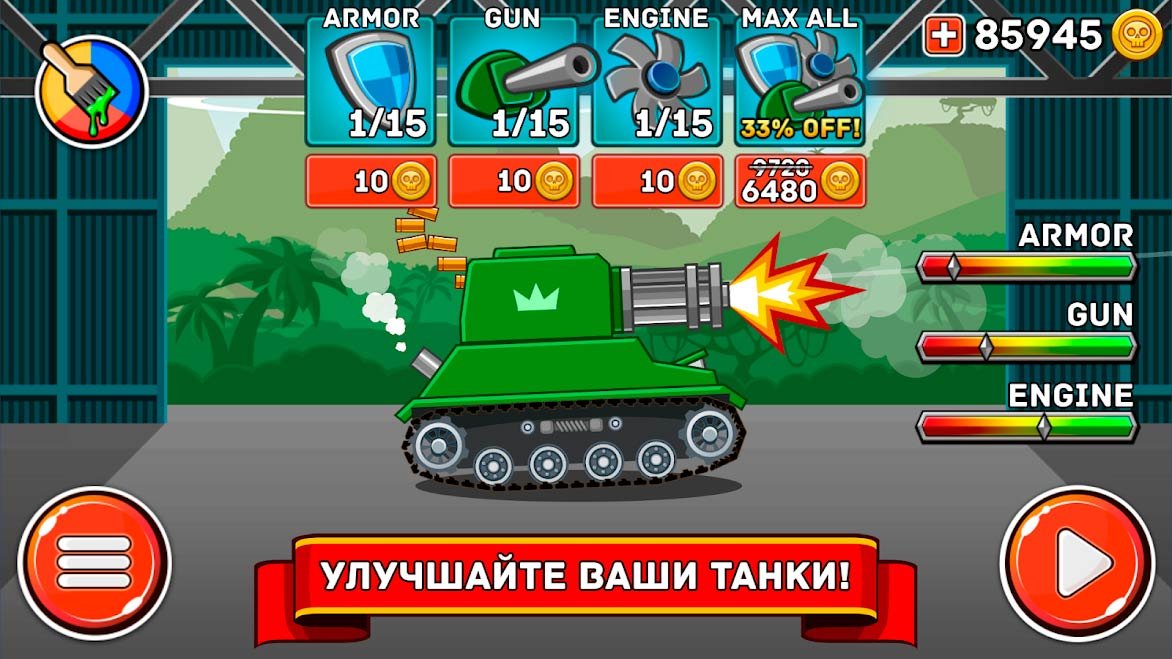- Глобальная система улучшений и прокачки всех элементов танка;