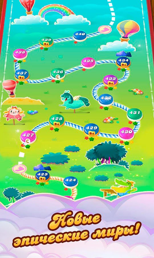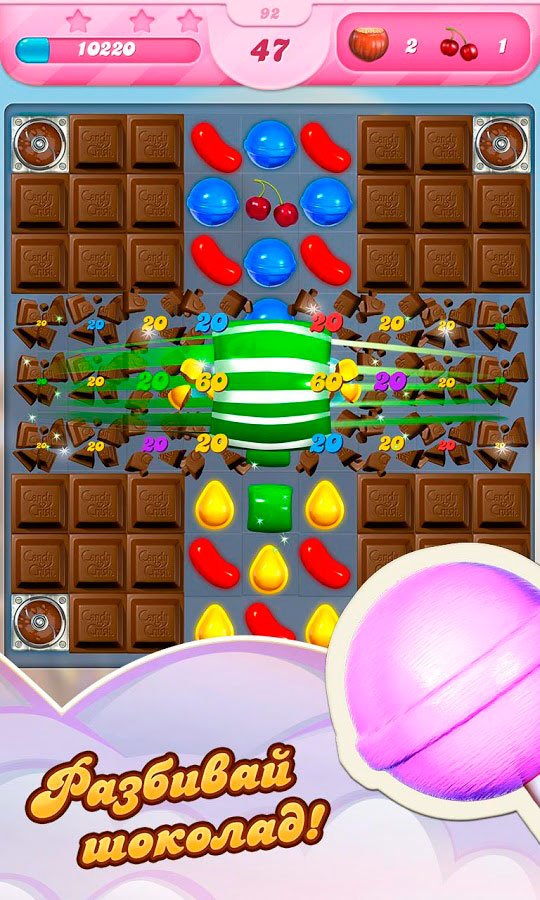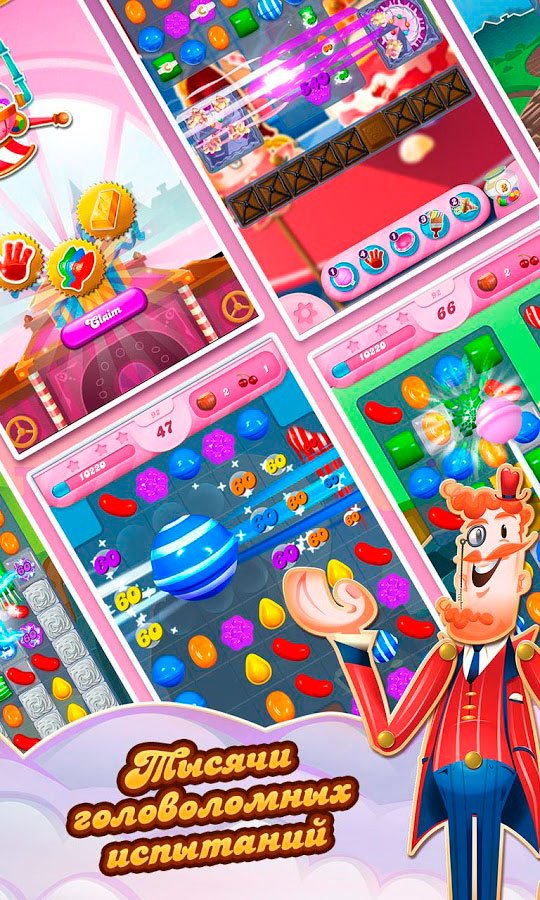 Проходите огромное количество уровней в этом интересном приключении, когда сможете скачать Candy Crush Saga на андроид. Главная задача игрока собирать конфетки в мощные комбинации. Составляйте самые длинные линии и получайте удивительные и полезные бонусы. Они смогут упростить прохождение уровней и повысить рейтинг. Это уникальная возможность почувствовать сладкую победу. Можно устроить соревнование против своих друзей и проверить, кто сможет лучше продумать ходы и составить мощные комбинации. Постарайтесь набрать огромное количество очков и повыситься в системе рейтинга.
