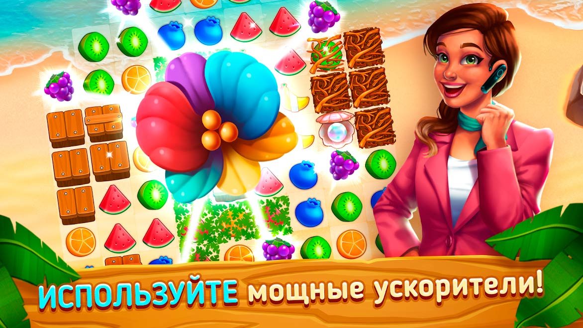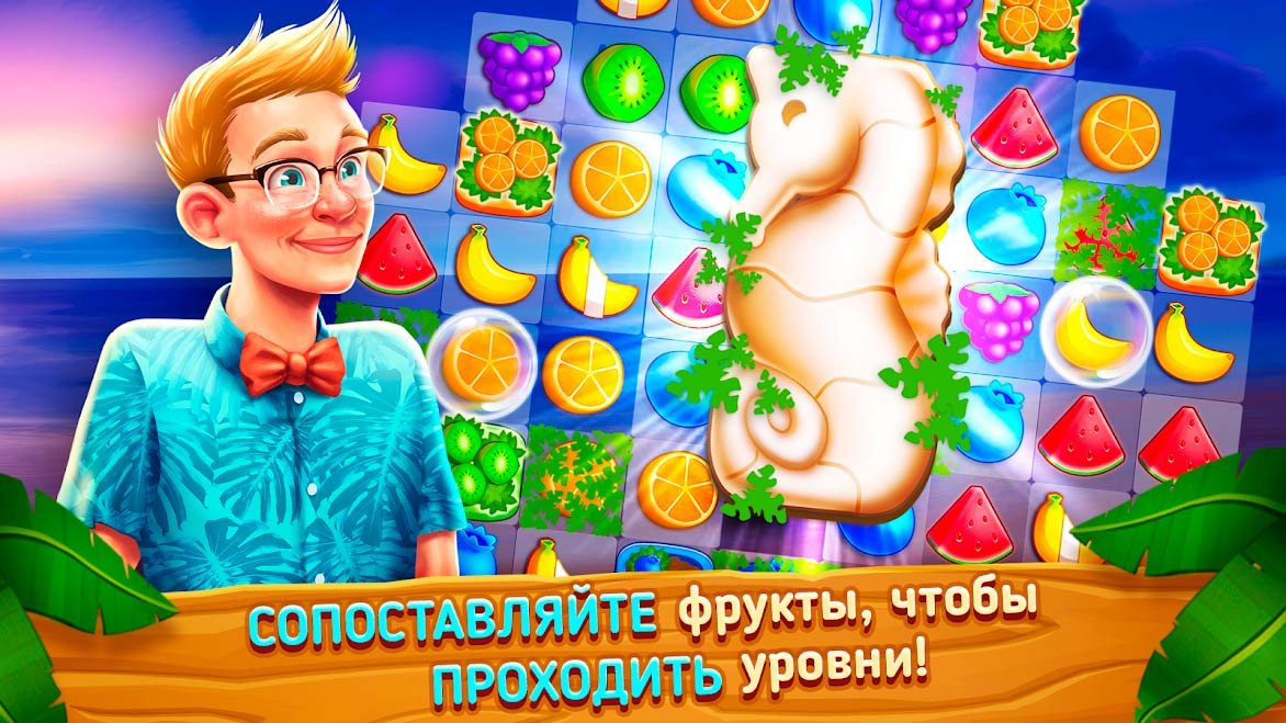 - Замечательные уровни головоломки три в ряд, где игрок должен собирать комбинации из тропических фруктов;
