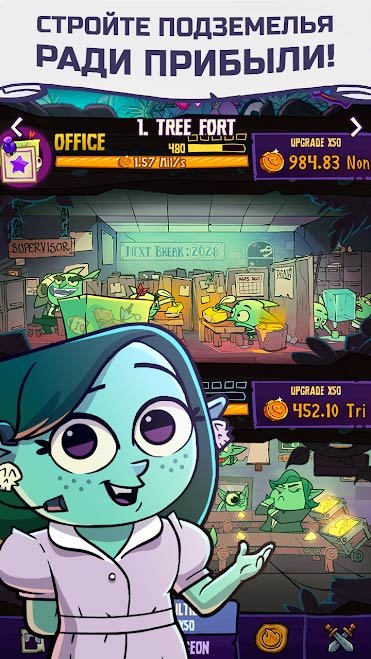 Если скачать Dungeon, Inc. На андроид станут доступны такие преимущества и особенности:- Огромная коллекция монстров, которых можно будет выращивать в своем подземелье, и прокачивать их уровни;