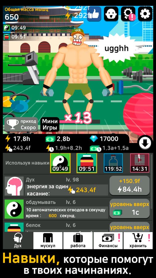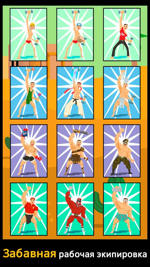 Обязательно попробуйте скачать Muscle King на андроид, потому что в игре есть множество преимуществ. Игра сделана в красивой качественной графике и богата возможностями качалки. Вы сможете пользоваться огромным арсеналом снарядов. Начинай процесс освоения с первоначальных упражнений. Вместе с ними можно будет начать качаться и понять как можно лучше весь процесс наращивания мышечной массы. Пользуйтесь навыками, чтобы добиваться крутых результатов. Продвигайтесь по системе рейтинга и попытайтесь добиться лидерства в гонке. Одевайте своего персонажа в специальную экипировку, чтобы он начал выглядеть совершенно.Стань крутым качком