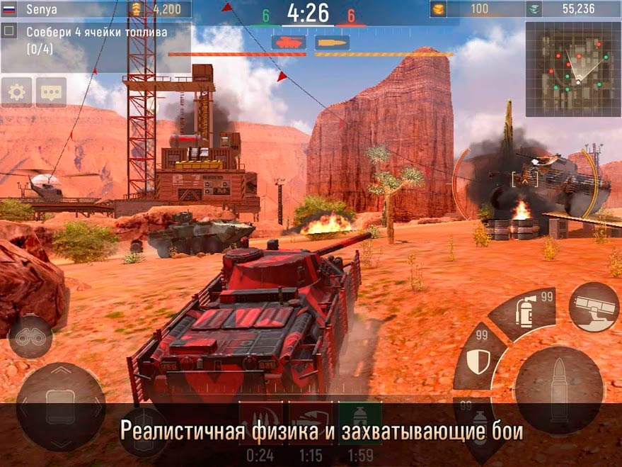 Подберите для себя подходящий танк и выберите собственную тактику. Выберите легкий или тяжелый танк, улучшайте его, ставьте дополнительное вооружение и наносите удар. Разработчики подготовили несколько боевых арен, благодаря которым можно погрузиться в нереально крутую битву. Онлайн игра получилась многопользовательской, она открывает перед вами множество возможностей и скорее всего не даст оторваться от девайса очень быстро. Играйте в одиночном режиме, в многопользовательском режиме, принимайте участие в турнирах и занимайте призовые места. Но для начала нужно скачать Metal Force: Death Race на андроид устройство, после чего сразу же приступите к прохождению и открытию новых видов танков или вооружения.