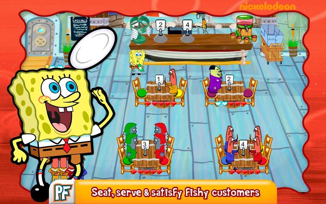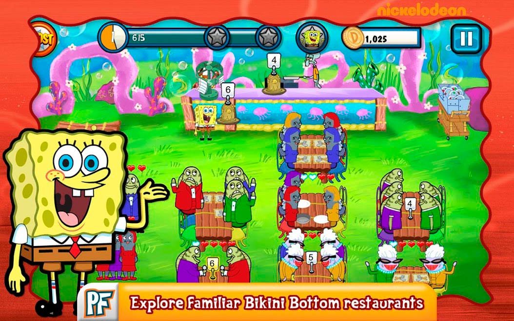 Весело проводите время вместе со SpongeBob и наслаждайтесь красочным сюжетом игры. Кребс понемногу расширяет империю, строит новые заведения, улучшает рестораны и ставит небольшие магазины. Он поставил перед собой одну задачу - удовлетворить каждого клиента. Игроки должны обновлять рестораны, придумывать что-то новое, ставить другие точки и еще многое иное. Особенно интересно будет скачать SpongeBob Diner Dash на андроид маленьким детям. Скорее всего, они захотят проводить в игре очень много свободного времени. Ребятки с головой окунуться в сюжет и постараются выполнить все задания, предоставленные создателями. Собирайте советы, прислушивайтесь к ним и удовлетворяйте каждого клиента, пришедшего к вам за покупкой.Особенности игры SpongeBob Diner Dash
