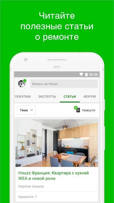 Насколько известно, приложение предлагает около 16 миллионов разнообразных снимков. Сортируйте их по стилю, подбирайте уникальные фотографии и сохраняйте в собственный альбом. После таких действий вы сможете вернуться к снимкам в любое нужное время. Лучшие дизайнеры, подрядчики и архитекторы предлагают познакомиться с экспертами. Посмотрев их предложения, послушав мнение, обязательно захочется скачать Houzz - дизайн идеи интерьера на андроид прямо сейчас и приступить к ремонту собственной квартиры. Берите идеи из программы и вдохновляйтесь за несколько минут. Воплотите любую мечту в реальность, и все ваши родственники или близкие люди будут шокированы ремонтом! Добавляйте свои идеи, разукрашивайте фото и советуйте приложение друзьям или знакомым.