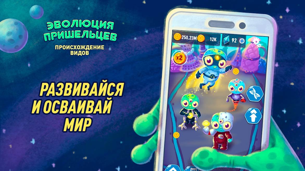 Задача любого из нас получить большое количество киборгов и роботов. Иногда возникают такие проблемы, когда получить под управление простого человека не удается, тогда приходится обращаться за помощью к иным жителям мира. Старайтесь как можно быстрее обновлять и развивать существ. От любого результата получайте только удовольствие и доказывайте, что вы сможете справиться с любой проблемой, какой бы тяжелой она не была. Экспериментируйте, смешивайте гены и возьмите Эволюцию в собственные руки. Нужно скачать Эволюция Пришельцев: Происхождение Видов на андроид и приступить к прохождению миссий прямо сейчас. Чем быстрее сделаете это, тем больше шансов достичь успеха.Информация об игре