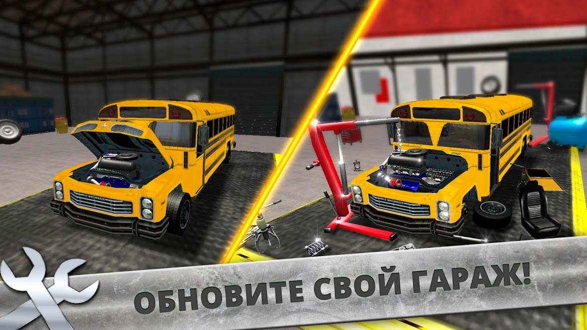 Как только вы надумаете скачать Автобус механик симулятор: тюнинг и ремонт машин на андроид, так сразу же отправитесь в гараж с большим количеством разнообразных автомобилей. Если хорошо постараетесь, то за короткий срок времени сможете стать одним из лучших механиков города. Попробуйте создать собственную империю, а также превратитесь в невероятно крутого магната. Все свои заработанные денежные средства можете вложить в обновление инструментов или обновление собственной мастерской. Делайте ремонт в складе, подготовьте его к большим автомобилям и старайтесь как можно быстрее продвинуться среди других пользователей. Получайте опыт, пусть другие личности также знакомятся с вами, пригоняют собственные автомобили на ремонт. Старайтесь как можно скорее доказать свои способности, сделать так, чтобы ваше имя знали везде. Меняйте некоторые части автомобилей, тюнингуйте и, изменяйте параметры двигателя и еще многое другое. В общем, перед игроком открывается большое количество возможностей. Главное - обращать на них внимание и доказывать, что вы способны на очень многое.Улучшение мастерской в Автобус механик симулятор: тюнинг и ремонт машин