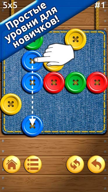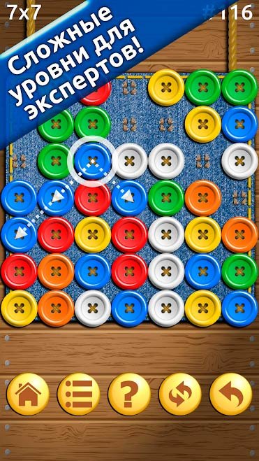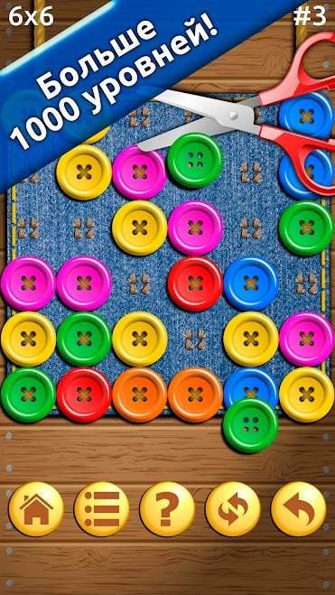 При первом запуске игры вам придется пройти небольшое обучение. На дисплее мобильного телефона появляется небольшой кусочек ткани, на котором имеется несколько пуговиц, совершенно разных цветов. Любой из ходов изображается стрелочками. Таким образом вы сможете разобраться со всеми своими ходами. Выделяйте несколько пуговиц, срезайте их, получайте очки и опережайте своих соперников. Мы уверены, что у вас обязательно все получится, поэтому нужно скачать Пуговицы и Ножницы на андроид уже сейчас. Здесь все сделано по-максимуму реалистично. Любой ход можно откатить назад, чтобы не уйти в ступор.