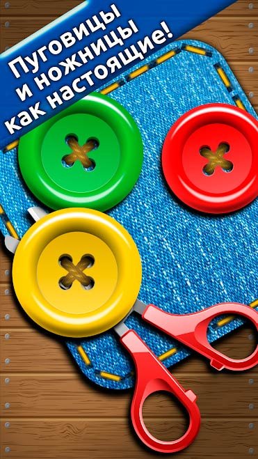 Попробуйте выделить сразу несколько пуговиц одного и того же цвета, чтобы как можно быстрее срезать их. Понятное дело, что за это действие вы получаете определенное количество бонусных очков и денежных средств. Чтобы срезать пуговицы, их нужно расположить на одной линии. Они могут лежать как по вертикали, так и по горизонтали. Кроме того, есть возможность срезать их даже по диагонали. Интересно получается, не так ли? Срезайте пуговицы, проходите как можно больше уровней и становитесь одним из лучших геймеров. Проходите уровень за маленькое количество времени, получайте очки и еще многое иное. Как и во многих других проектах подобного типа, срезать пуговицы по одной ни в коем случае нельзя. Старайтесь как можно раньше продумать то, в каком же порядке их все-таки срезать. Данная игра развивает мышление любого игрока, а также повышает способности в планировании действий. Если решите скачать Пуговицы и Ножницы на андроид, то скорее всего на длительное время втянетесь в проект.