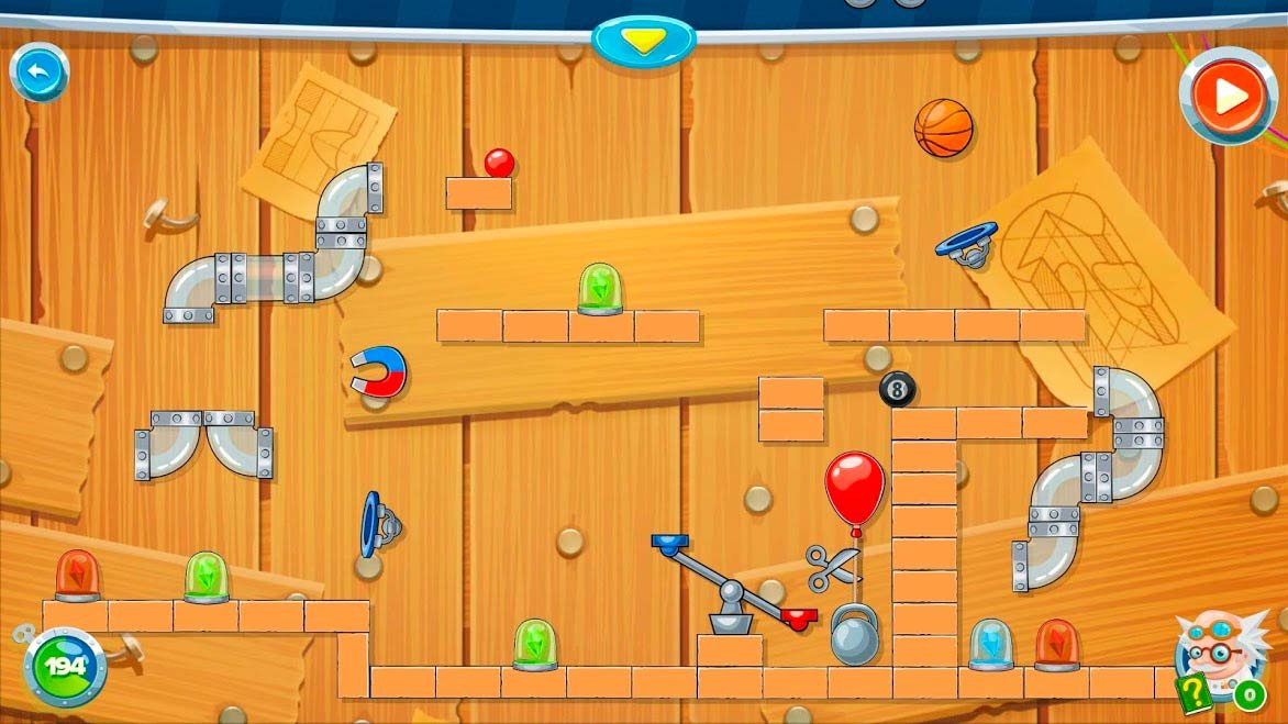 Чтобы пройти предоставленные уровни, требуется выполнить кучу заданий. Решайте разнообразные головоломки, обращайте внимание на подсказки и не давайте другим игрокам пройти больше уровней, чем вы. Интерфейс приложения оказывается довольно-таки простым. Разработчики сделали все удобно, дают возможность играть с первых минут погружения. Управление также построено удобно. Любой желающий может скачать Rube's Lab - Физическая Игра на андроид и разобраться с кнопками за короткий срок времени. В принципе, во многом проект похож на другие приложения, предоставленные в Play Market. Несмотря на то, что игра выполнена в 2D стиле, она имеет реалистичную физику. Мы уверены, что эстетика удивит большинство геймеров. Все можно попробовать самостоятельно и за короткий срок времени убедиться во всем вышенаписанном.Знакомство с уровнями в Rube's Lab - Физическая Игра