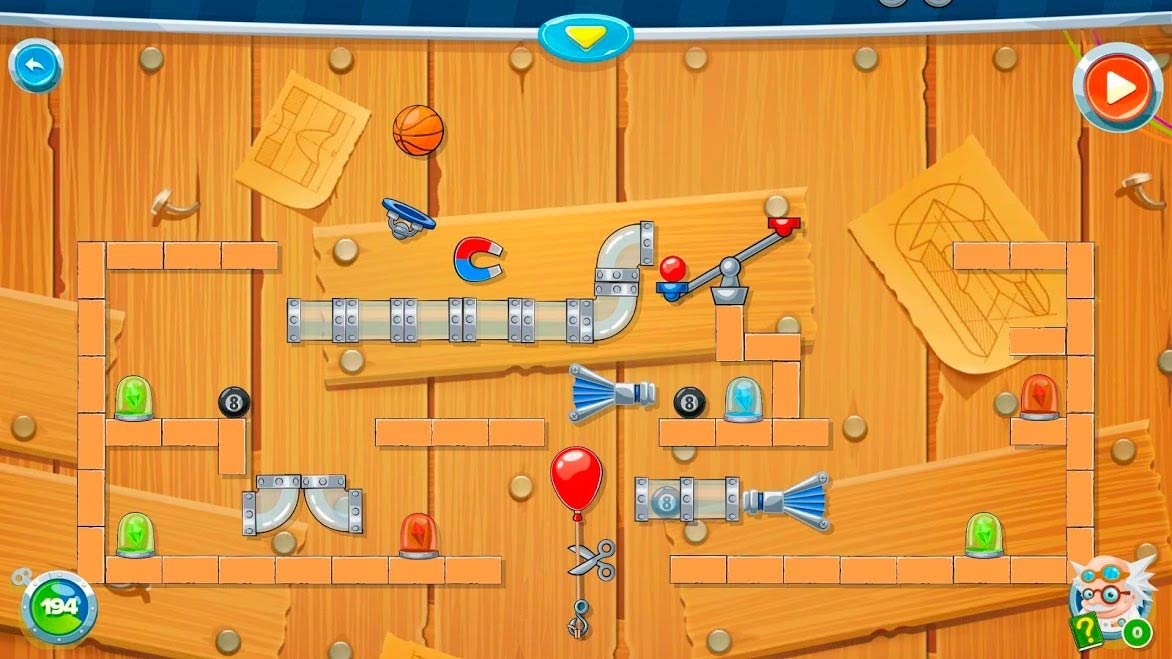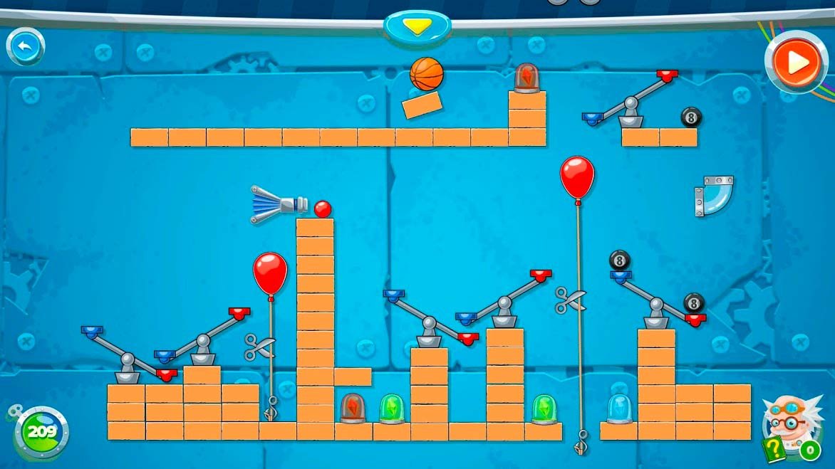 Создатели подготовили большое количество левелов. Отправляйтесь в лабораторию, сталкивайтесь с различными механизмами, решайте головоломки и сопоставляйте инструменты, чтобы собрать единое целое. Чтобы решить тяжелые задачи, придется воспользоваться определенными инструментами. В атмосферу игры вам поможет погрузиться прекрасное музыкальное сопровождение. Оно оказалось бодрым и даже если вам захочется спать, то проект обязательно разбудит вас. Если не получается пройти тот или иной уровень, в любой момент можно обратиться за помощью к подсказкам. Их предоставляется ограниченное количество. Но если вы привлечете друзей и дадите им возможность скачать Rube's Lab - Физическая Игра на андроид, то количество решенных головоломок возрастет.Информация об игре