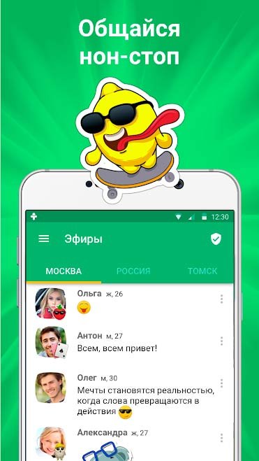 Приложение выполнено в зеленых тонах, смотрится очень красиво. Чувствуется профессиональный подход к разработке программы. Если скачать ДругВокруг: новые знакомства, онлайн чат на андроид, то за короткий срок времени можно отыскать себе новых друзей. Заводите знакомства в городе, общайтесь с привлекательными парнями или девушками, договаривайтесь о встрече, дарите подарки и многое другое. На самом деле, здесь все очень круто сделано. Чтобы начать общение, напишите понравившемуся человеку "Привет" и начинайте общаться. Находите интересных личностей, выбирайте город, обратите внимание на возраст, пол и его интересы. В принципе, есть возможность подобрать все самостоятельно и за максимально короткий срок времени найти себе пару. Добавляйте в закладки тех, кто вам понравился. Знакомьтесь с ними через некоторое время и ни в коем случае не теряйте их.