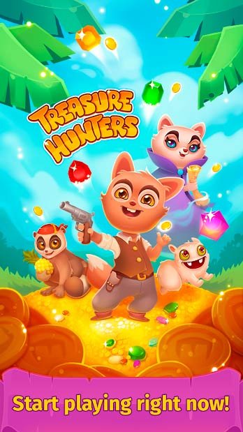 За ежедневное посещение игры вы обязательно должны получать бонусы. Пираты оказались щедрыми и трюмы уже наполнены сокровищами. Но теперь ситуация меняется и нужен совершенно другой, более надежный пират. Доверяйте ему другие части океана, изведывайте территории и доказывайте всем, что вы способны справиться с любыми возникшими проблемами. На корабле игрок отправляется на прохождение интересных уровней. Понятное дело, что головоломки такого типа крайне тяжелы, но для тех, кто не в первый раз играет, здесь все оказывается очень просто. Уничтожайте драгоценности, убирайте их с поля боя и набирайте максимальное количество очков. Тогда успех обязательно придет к вам. Скачать Охотники за сокровищами на андроид можно прямо сейчас. Теперь в свободное время можно не просто смотреть в потолок, а проводить его в легендарной игре.
