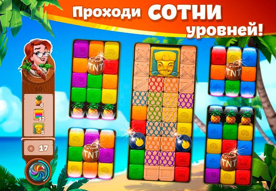Игра получила большое количество особенностей, за счет чего считается одной из лучших. Разработчики предоставили огромное количество разнообразных уровней, количество которых достигает сотни. Попробуйте самостоятельно восстановить постройки, сады, пляжи и некоторые другие места, чтобы добиться популярности и стать известными личностями. Верните острову невероятную красоту, чтобы люди могли прийти на это место и как-то показать себя с лучшей стороны. Погружайтесь в увлекательную историю, расследуйте путешествие и тайны. Отыскивайте артефакты, сокровища и даже золото. В общем, здесь очень много возможностей. Главное - скачать Lost Island: Blast Adventure на андроид и познакомиться со всем поближе. Познакомьтесь с жителями острова, осуществляйте их мечты и подружитесь с археологом по имени Элли. Он расскажет вам много интересного.Информация об игре