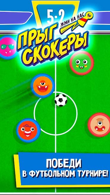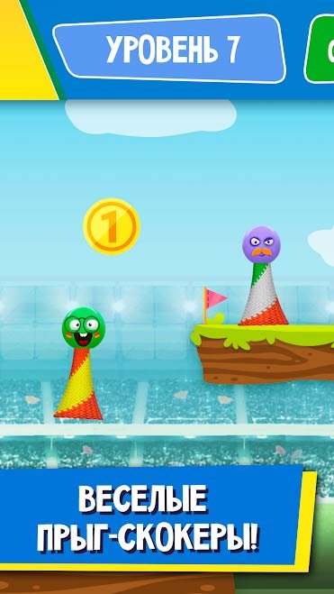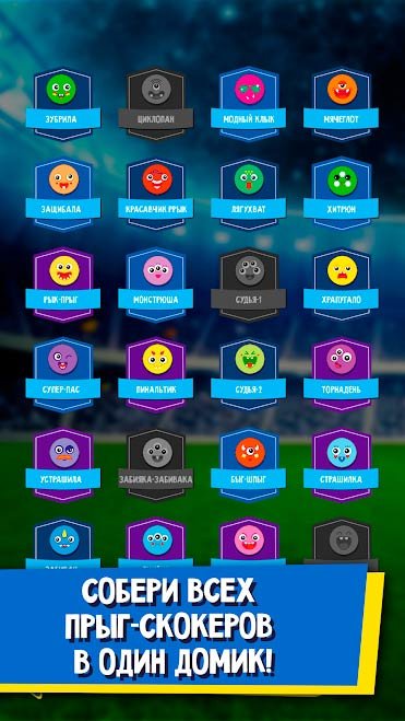 Игра получила множество ключевых особенностей, за счет чего оказывается в списке лучших спортивных проектов. Графика получилась качественной и мультяшной, за счет чего привлекает к себе внимание не только маленьких детей, но и их родителей. Отправляйтесь в захватывающий футбольный матч и проходите все подготовленные задания. Развивайте собственную коллекцию, добавляйте в игру своих персонажей и доказывайте, что сможете стать первым в этом футбольном мире. Скачать Прыг-скокеры на андроид можно совершенно бесплатно. Здесь не имеется никакой рекламы и вся информация была переведена на русский язык. Кроме того, для некоторых личностей можно сделать перевод и на английский язык. Разработчики сделали все для пользователей, то есть для вас. Пробуйте играть, оставляйте комментарии об игре и ставьте собственные оценки.Информация об игре