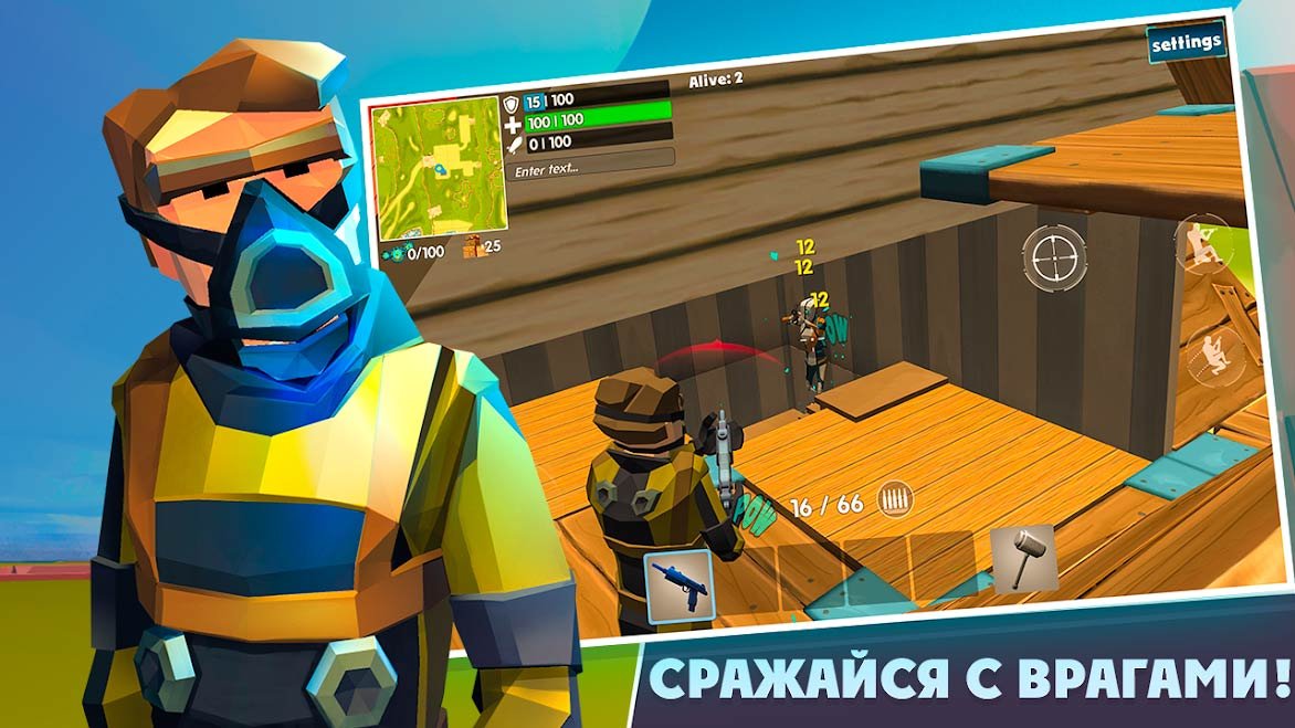 Многие игроки могут проложить к победе свой путь. Попробуйте скачать Rocket Royale на андроид и отыскать самое мощное вооружение. Стреляйте из него в противников, собирайте разные ресурсы и попробуйте построить лучшее укрепление. Если противник не сможет его пробить, значит вы одержите победу в войну. В арсенале любого игрока оказывается около 20 видов разнообразного вооружения. Любое оружие имеет некую редкость и уникальные параметры. Со временем вам удастся улучшить вооружение и разработать другой стиль ведения боя. Сможете ли вы придумать свои правила для выживания? Если да, то прямо сейчас погружайтесь в проект и доказывайте свои профессиональные навыки.Информация об игре