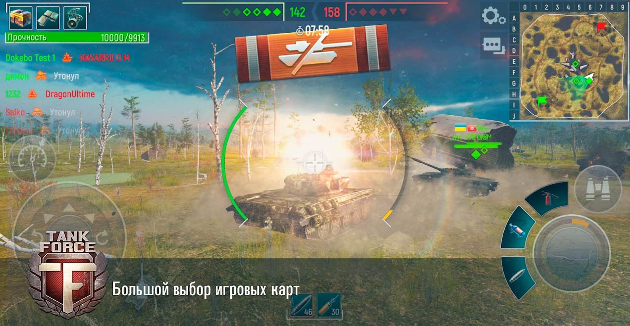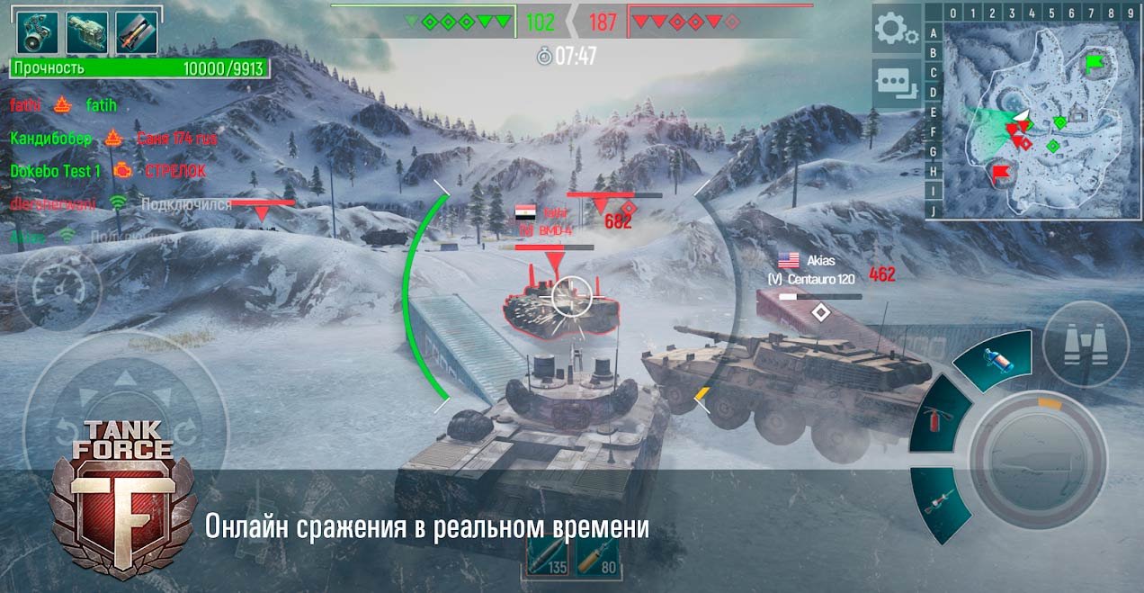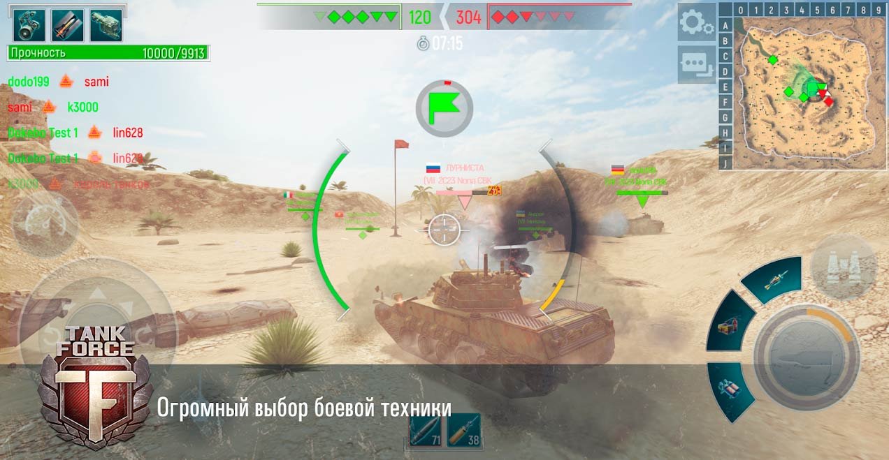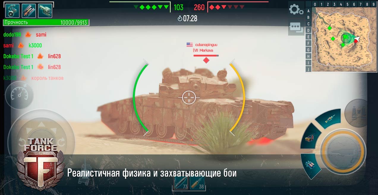 Игроки могут общаться между собой прямо в приложении. Присоединяйтесь к другим игрокам, вступайте в противостояние и помогайте захватывать ту или иную точку. Уничтожайте вражеские танки, открывайте технику, займитесь исследованием определенных арен и постарайтесь насладиться качественной графикой. На самом деле, игра получила кучу приоритетов, за счет чего может оказаться в списке лучших игр данного жанра. Если постараться, то за короткий срок времени можно прокачаться и доказать всем, что вы не просто так решили скачать Tank Force: Онлайн Игра на андроид телефон. Сражайтесь за звание лучшего и получайте награды!